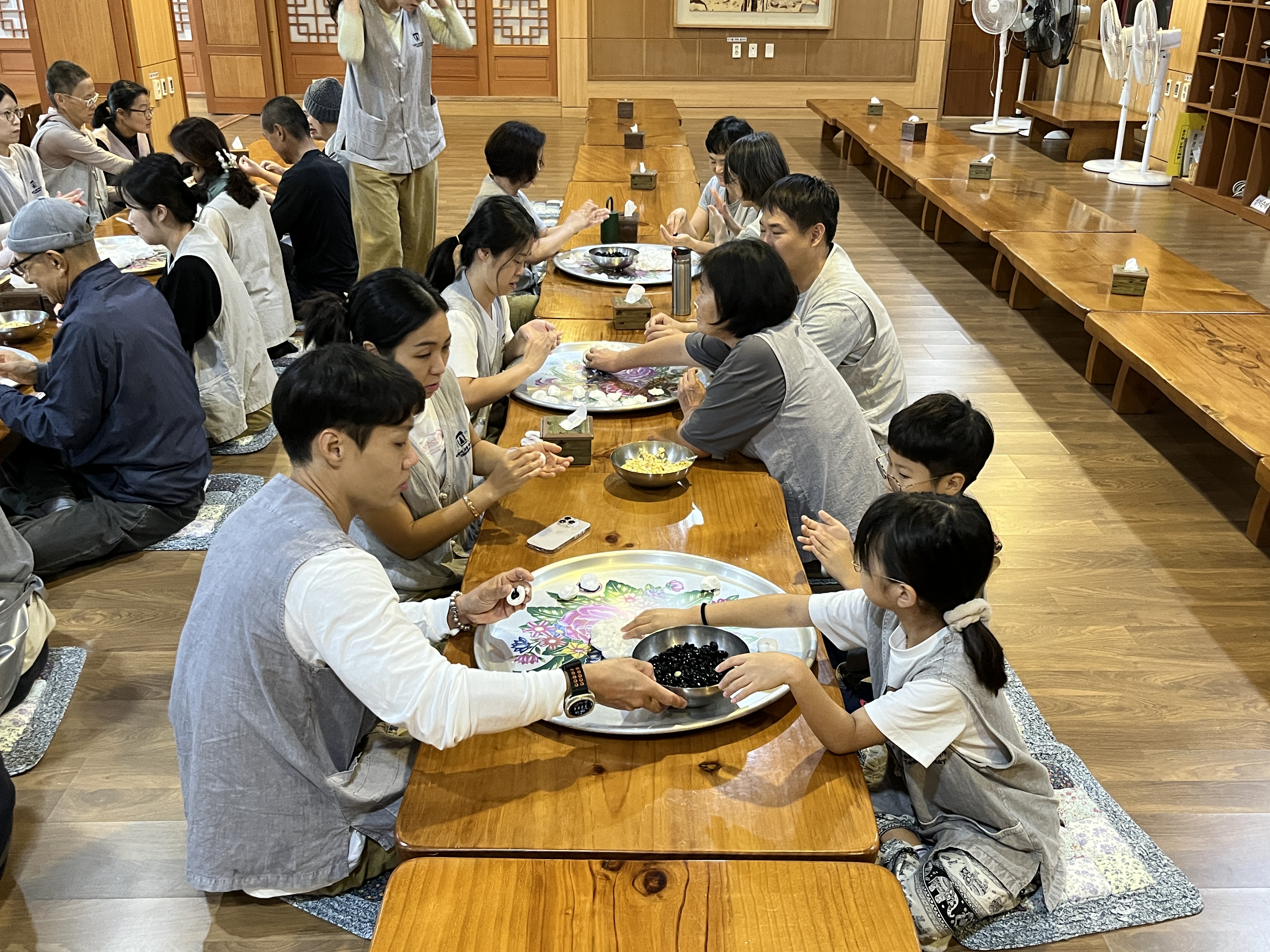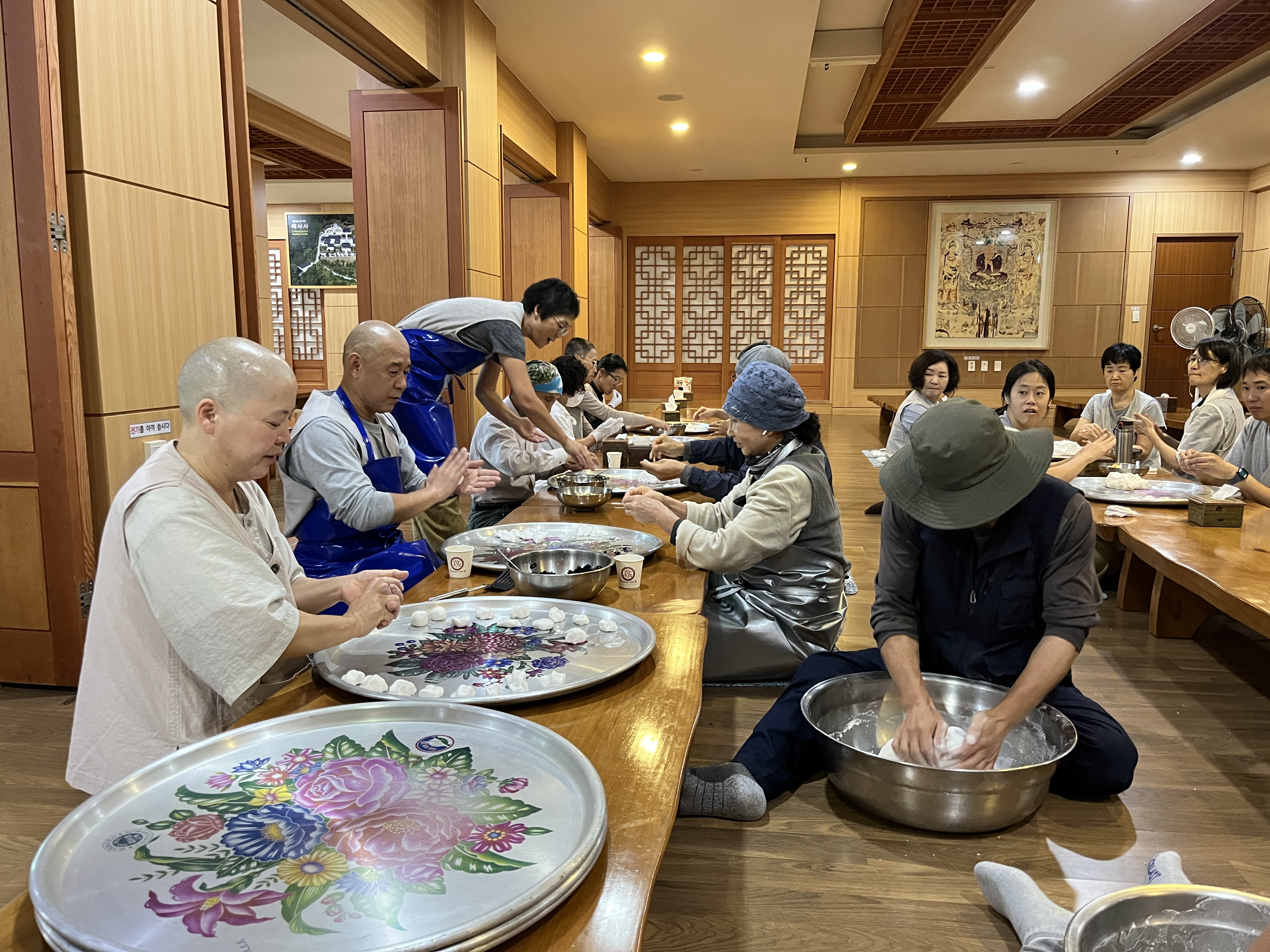 국화향기 가득한 추석 명절!.... 축서사 사부대중이 한자리에 모여 송편을 빚었습니다.