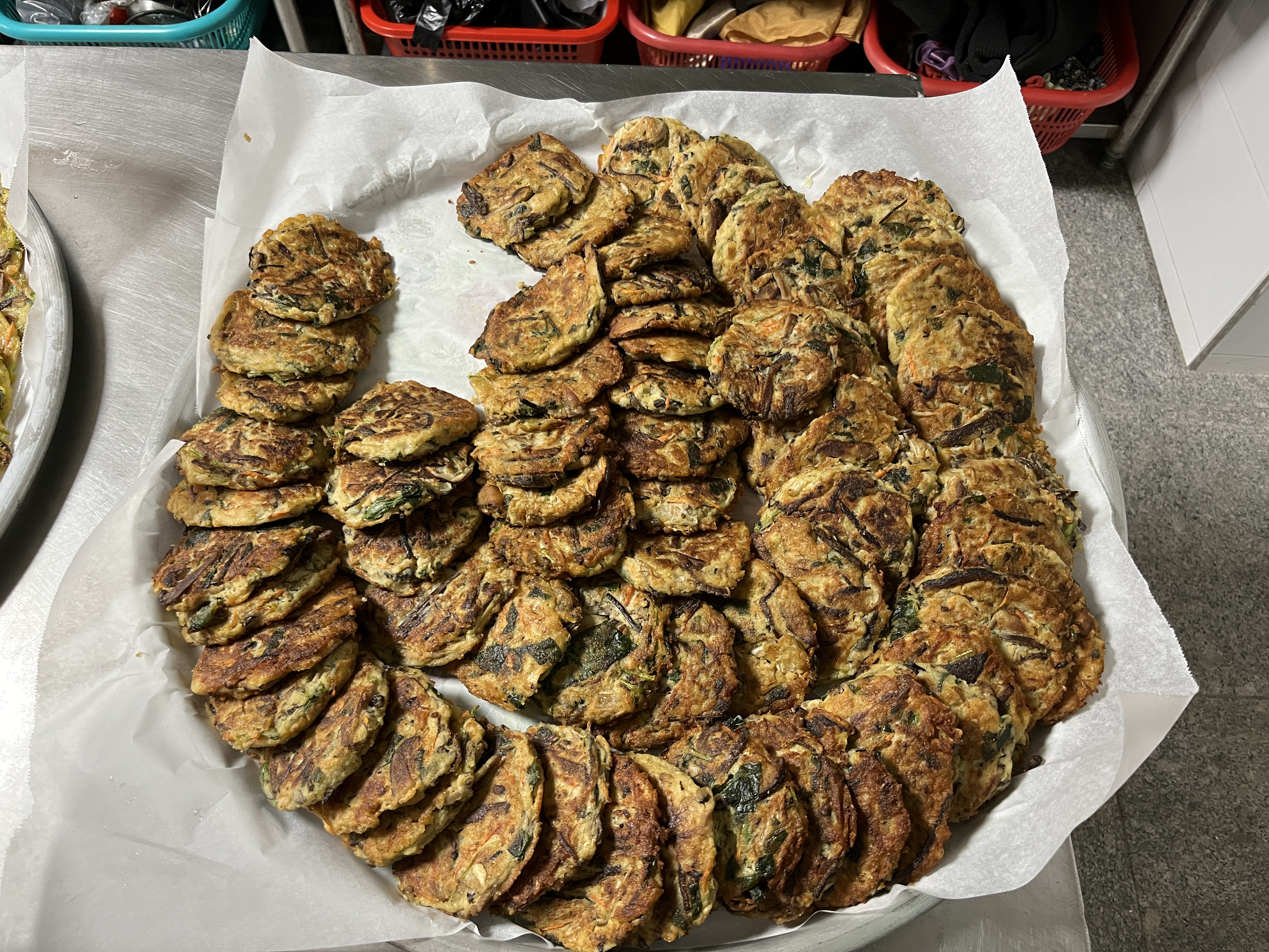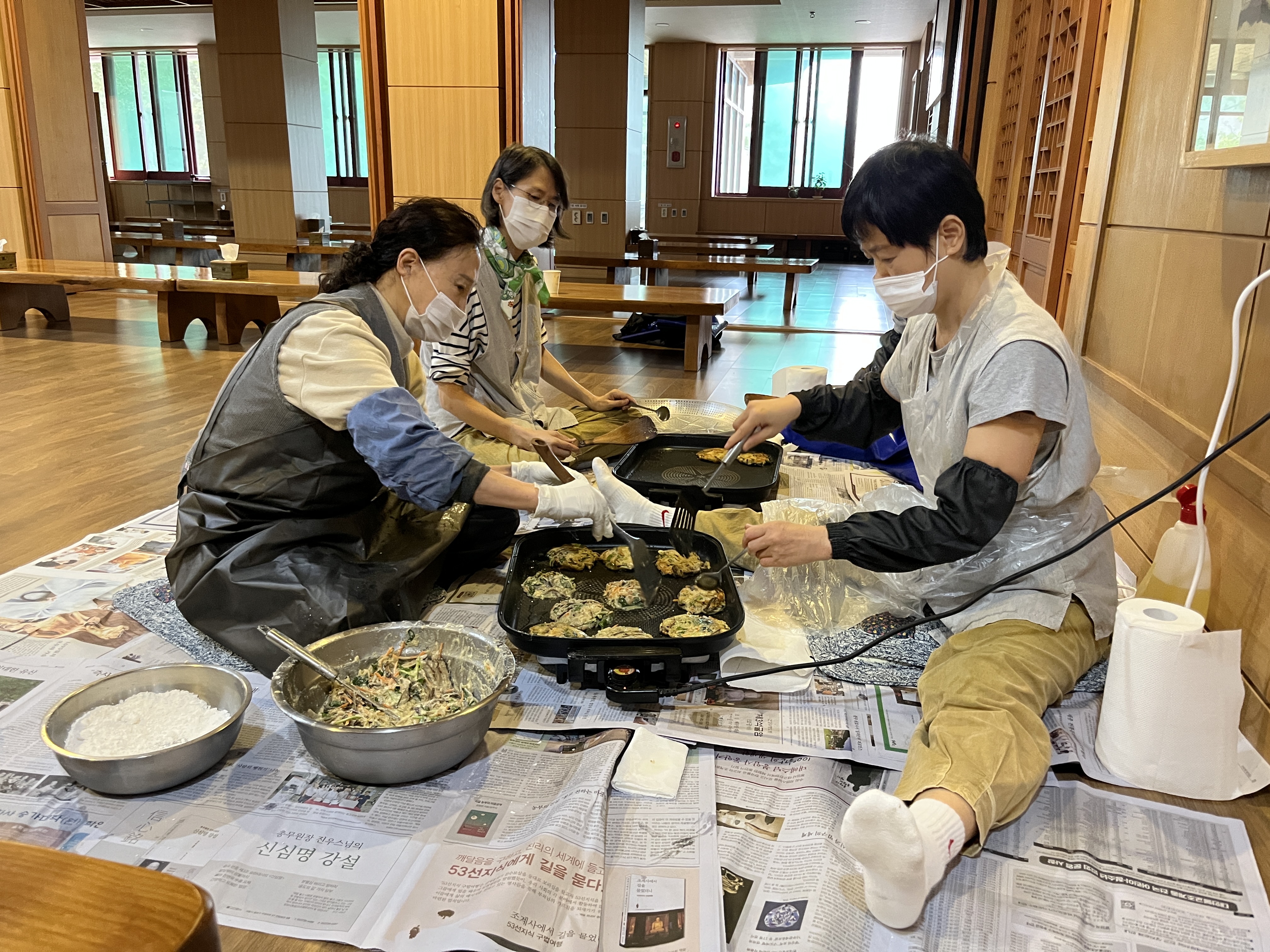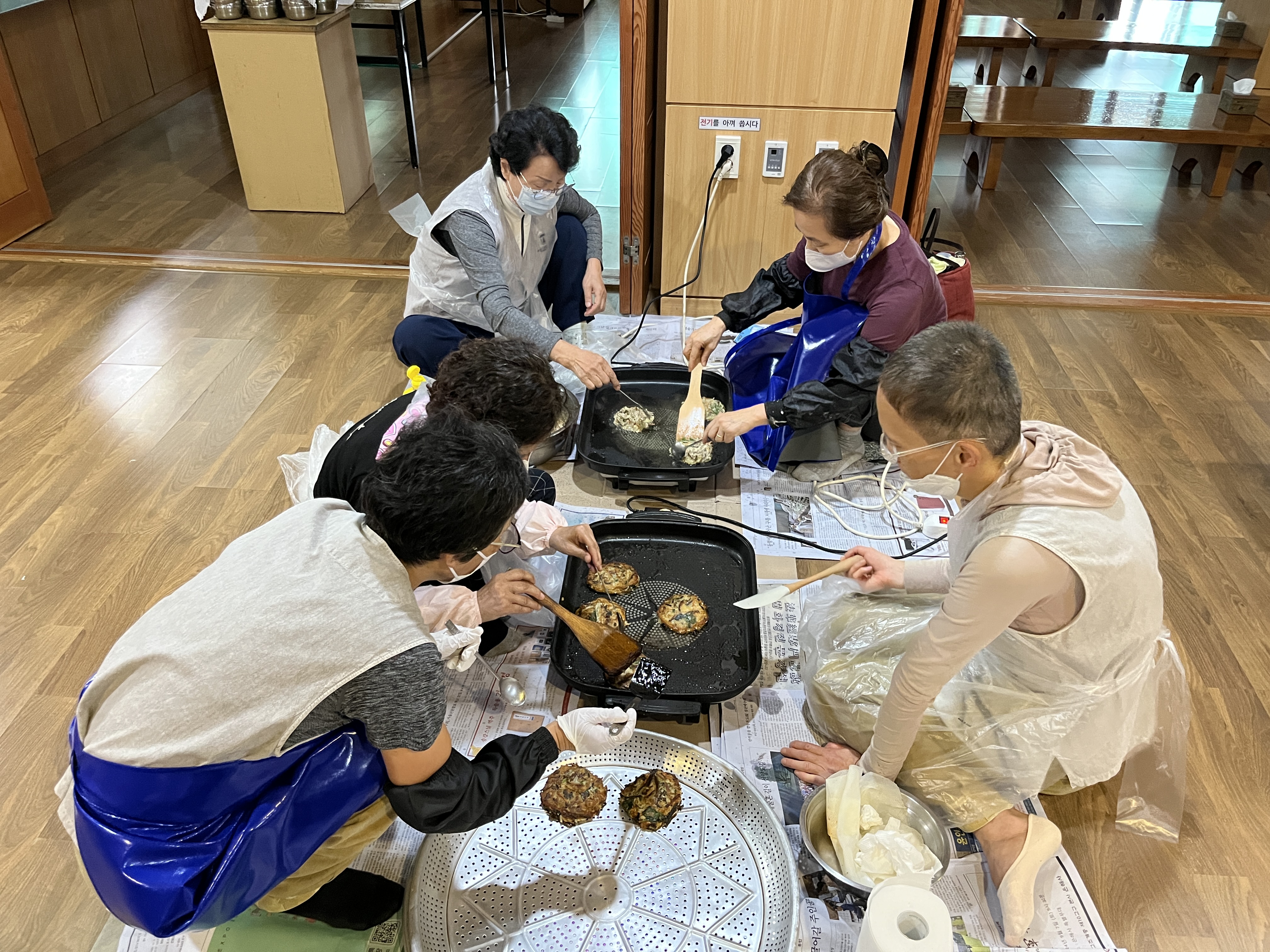 연휴 둘째 날!.... 정현 스님을 중심으로 사부대중이 하나 돼 추석에 올릴 전을 부쳤습니다.